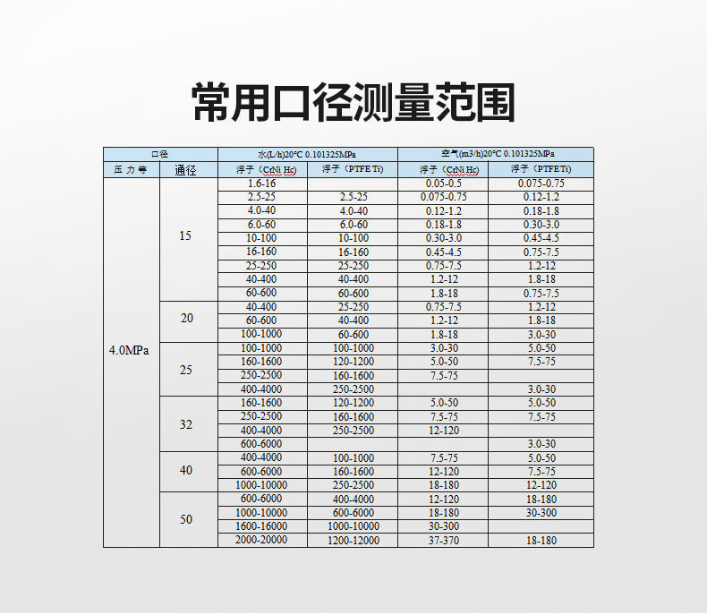 流量計測量管道口徑齊全:FZ系列智能金屬管轉(zhuǎn)子流量計提供包括從常規(guī)口徑DN15-DN100到特殊口徑DN8,DN10,DN150,DN200等所有金屬管轉(zhuǎn)子流量計能夠達到管道口徑,在小流量測量上非常有優(yōu)勢。