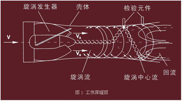 流量傳感器的流通剖面類似文丘利管的型線(如下圖1)。在入口側(cè)安放一組螺旋型導流葉片,當流體進入流量傳感器時,導流葉片迫使流體產(chǎn)生劇烈的旋渦流。當流體進入擴散段時,旋渦流受到回流的作用,開始作二次旋轉(zhuǎn),形成陀螺式的渦流進動現(xiàn)象。該進動頻率與流量大小成正比,不受流體物理性質(zhì)和密度的影響,檢測元件測得流體二次旋轉(zhuǎn)進動頻率就能在較寬的流量范圍內(nèi)獲得良好的線性度。信號經(jīng)前置放大器放大、濾波、整形轉(zhuǎn)換為與流速成正比的脈沖信號,然后再與溫度、壓力等檢測信號一起被送往微處理器進行積算處理,*后在液晶顯示屏上顯示出測量結(jié)果(瞬時流量、累積流量及溫度、壓力數(shù)據(jù))。